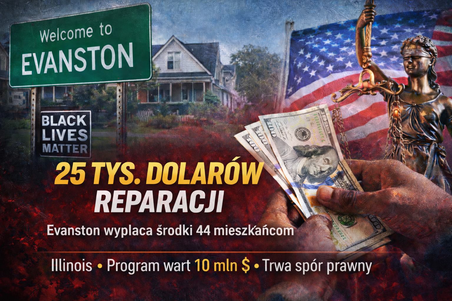 Miasteczko Evanston w stanie Illinois wypłaci po 25 000 dolarów 44 mieszkańcom w ramach miejskiego programu reparacyjnego – poinformował lokalny Komitet ds. Reparacji. Program skierowany jest do czarnoskórych mieszkańców oraz potomków czarnoskórych osób, które mieszkały w Evanston w latach 1919–1969.